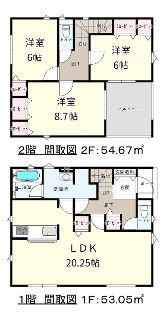 (1階)LDK20.2、(2階)洋6、洋6、洋8.7 |