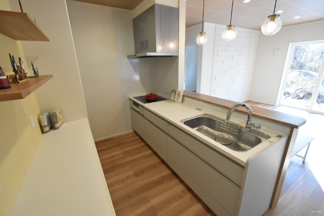 駐車場3台以上、公営水道、公共本下水、ZEHOriented(BELS)取得適合住宅、寒冷地エアコン1台、キッチンタッチレス水栓、カップボード、プロパンガス |
