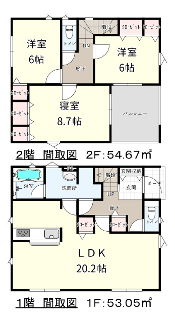 (1階)LDK20.2、(2階)洋6、洋6、洋8.7 |