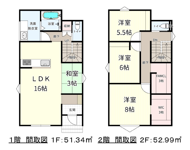 (1階)LDK16、和3、(2階)洋5.5、洋6、洋8 |