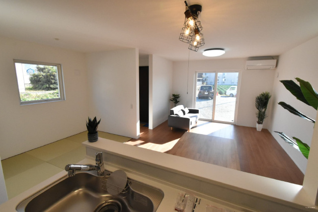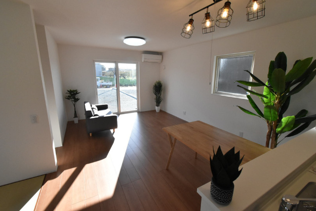 駐車場3台以上、南道路、公営水道、公共本下水、オール電化、IHクッキングヒーター、エコキュート、照明器具、火災報知器、地デジアンテナ、2台分土間コン・カーポート付き |