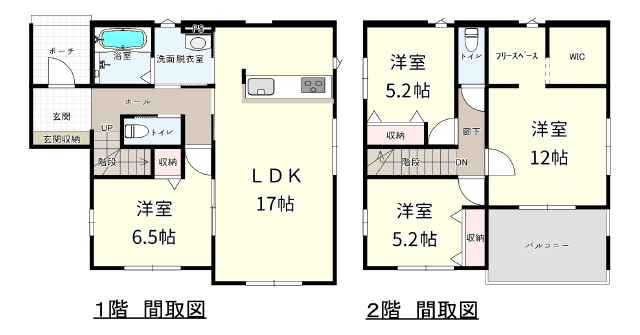 (1階)LDK17、洋6.5、(2階)洋5.2、洋5.2、洋12 |