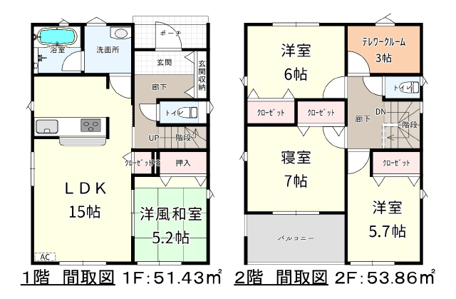 (1階)LDK15、和5.2、(2階)洋5.7、洋6、洋7、S3 |