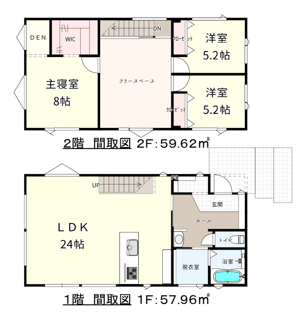 (1階)LDK24、(2階)洋5.2、洋5.2、洋8 |