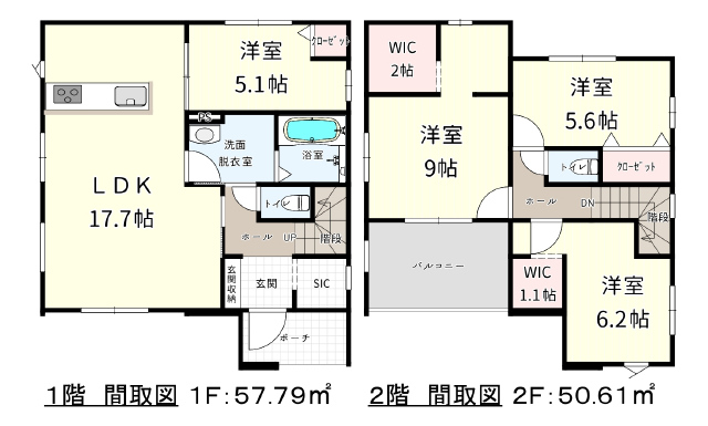 (1階)LDK17.7、洋5.1、(2階)洋5.6、洋6.2、洋9 |