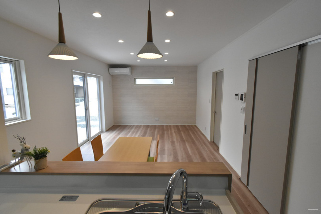 駐車場3台以上、公営水道、公共本下水、ZEH住宅、寒冷地エアコン、キッチンタッチレス水栓、食洗機、IHシステムキッチン、カップボード |