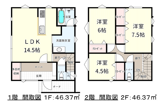 (1階)LDK14.5、(2階)洋4.5、洋6、洋7.5 |