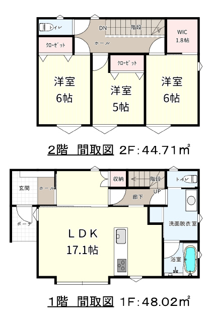 (1階)LDK17.1、(2階)洋5、洋6、洋6 |