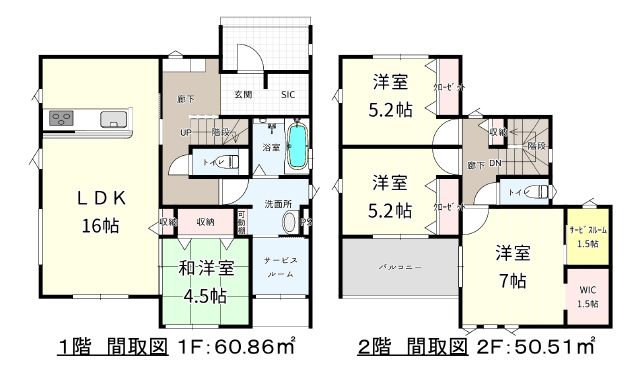 (1階)LDK16、和4.5、(2階)洋5.2、洋5.2、洋7、S1.5 |
