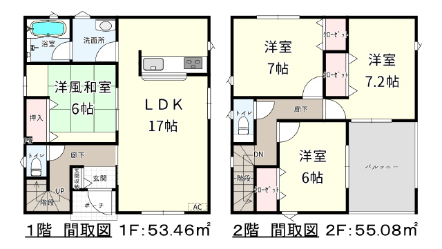 (1階)LDK17、和6、(2階)洋6、洋7、洋7.2 |