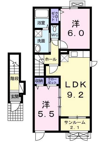 洋6、洋5.5、LDK10.1、サンルーム2 |