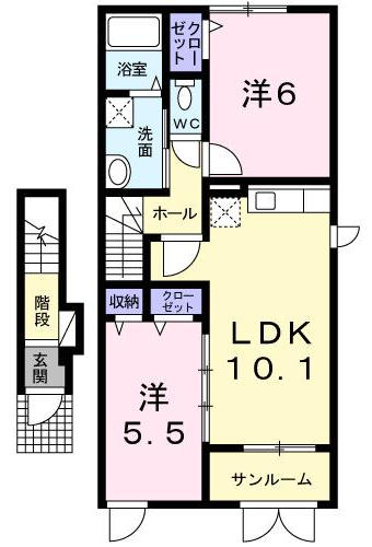 バストイレ別、ガスキッチン、室内洗濯機置場、エアコン2台、洋室、サンルーム、追焚バス、モニター付インターホン、二階以上、角部屋、インターネット対応、駐車場(1台2,200円~縦列2台3,300円)、町内会費600円/月、契約時クリーニング代70,000円要、家賃保証契約、更新料無し、24時間サポート費用 330円(月額)・更新事務手数料 22,000円・鍵セット費 3,300円 |