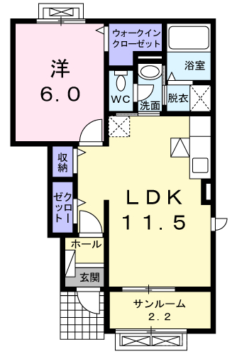 洋6、LDK11.5、サンルーム2.2 |