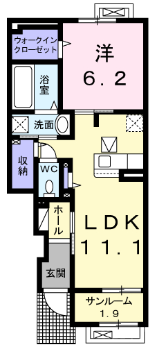 洋6.2、LDK11.1、サンルーム1.9 |